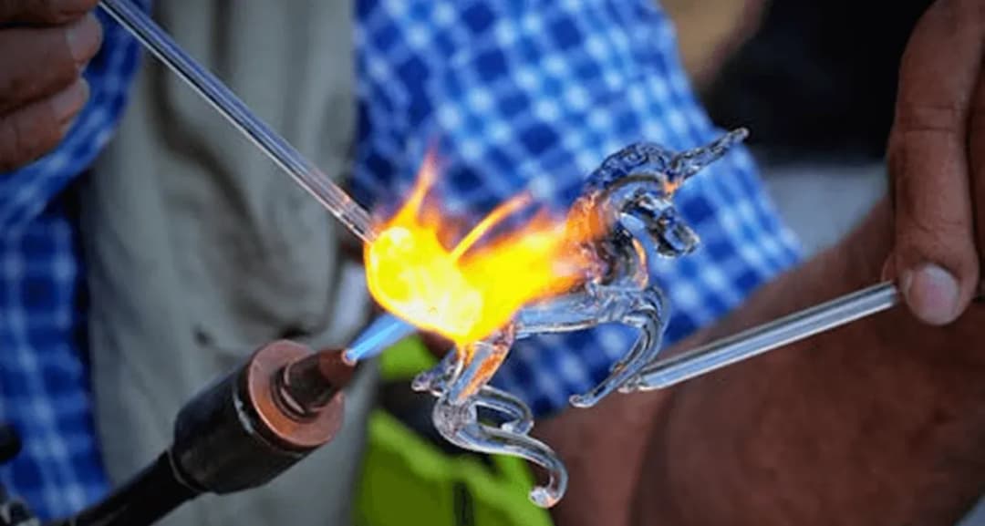 Le verrier à la flamme peut filer, modeler et souffler le verre.