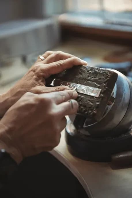 Un morceau de métal est extrait à l’aide d’outils coupants, puis modelé.