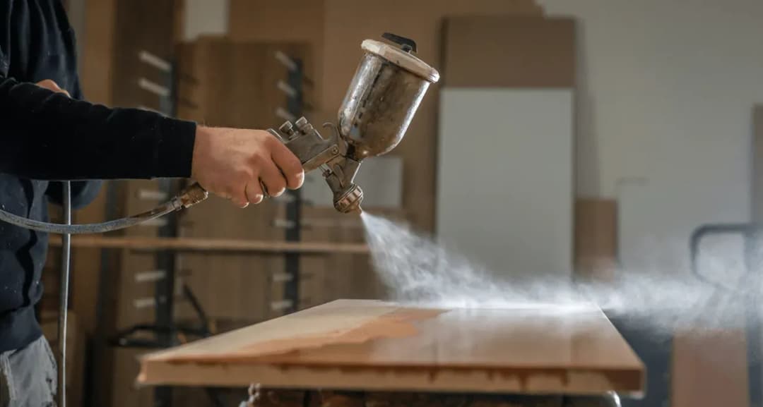 Cette technique, fréquemment utilisée dans la fabrication de meubles, industrielle ou non, ainsi que dans la restauration de meubles arts déco, permet de pulvériser les laques en nuages fins et d’obtenir un effet uniforme.